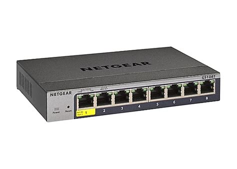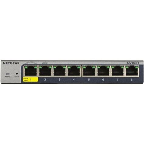 NETGEAR 8-Port Gigabit Ethernet Smart Switch (GS108T) - Managed, with 1 x PD Port, Optional Insight Cloud Management, Desktop or Wall Mount, Silent Operation, and Limited Lifetime Protection