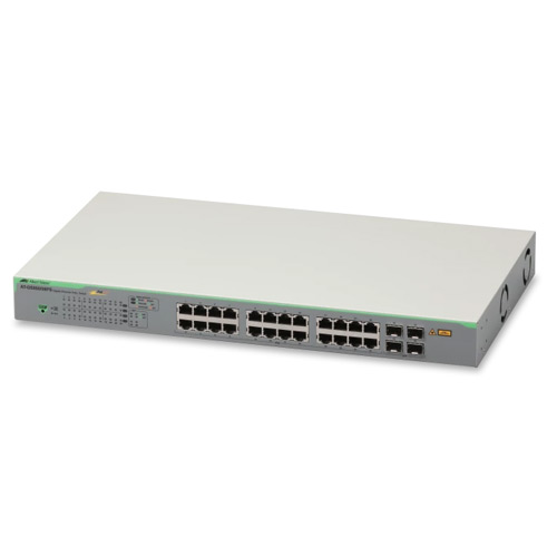 The Allied Telesis GS950/28PS Gigabit Ethernet WebSmart Switch features 24 10/100/1000T ports and four SFP ports that deliver up to 30 watts per port (PoE+) to power video surveillance and security cameras, wireless access points, IP phones, and to support other PoE powered devices. The PoE option eliminates the need to rewire the power supply and minimizes the clutter of power supplies and adapters in awkward places. Thanks to its compact size, the GS950/28PS is the ideal cost-effective solution for small businesses, classrooms, larger retail stores