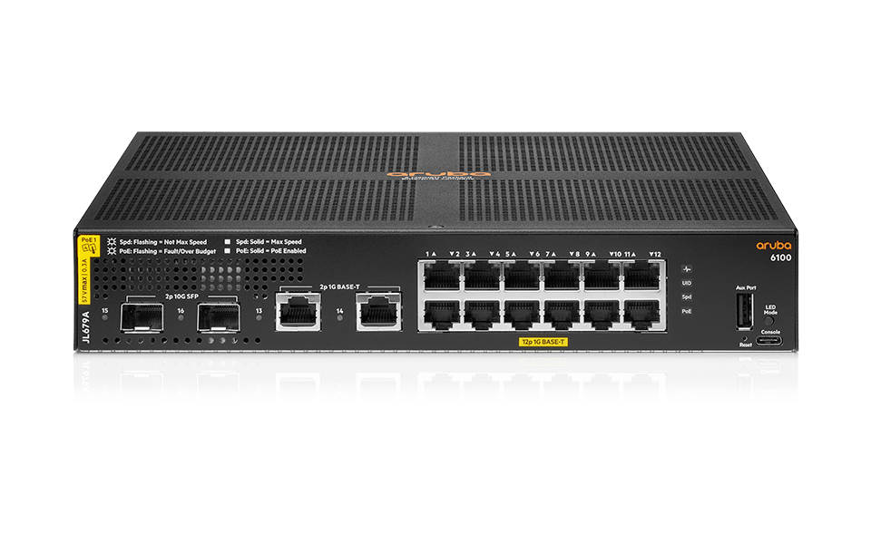 Aruba 6100 12G Class4 PoE 2G/2SFP+ 139W Switch (JL679A):