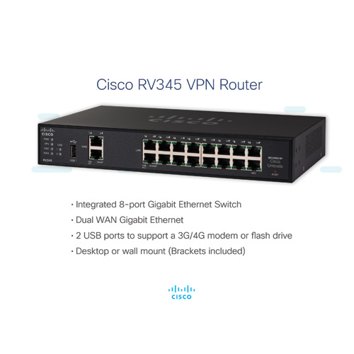 The Cisco RV345 Dual WAN Gigabit VPN Router is the perfect choice for any small business network that requires performance, security, and reliability.