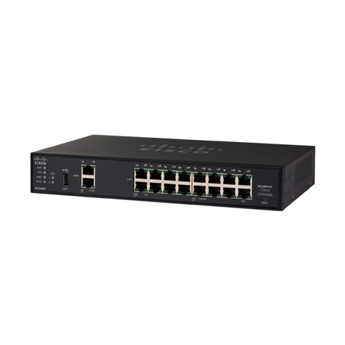 The RV345P has 16 LAN ports, half with Power over Ethernet (PoE). These allow direct connectivity for all your network devices, including access points and phones, without the need for extra power supplies or a switch.