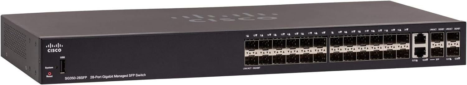 Cisco SG350-28SFP Managed Switch | 24 Gigabit Ethernet SFP Slots | 2 SFP Slots | 2 Gigabit Ethernet Combo | Limited Lifetime Protection (SG350-28SFP-K9-NA)