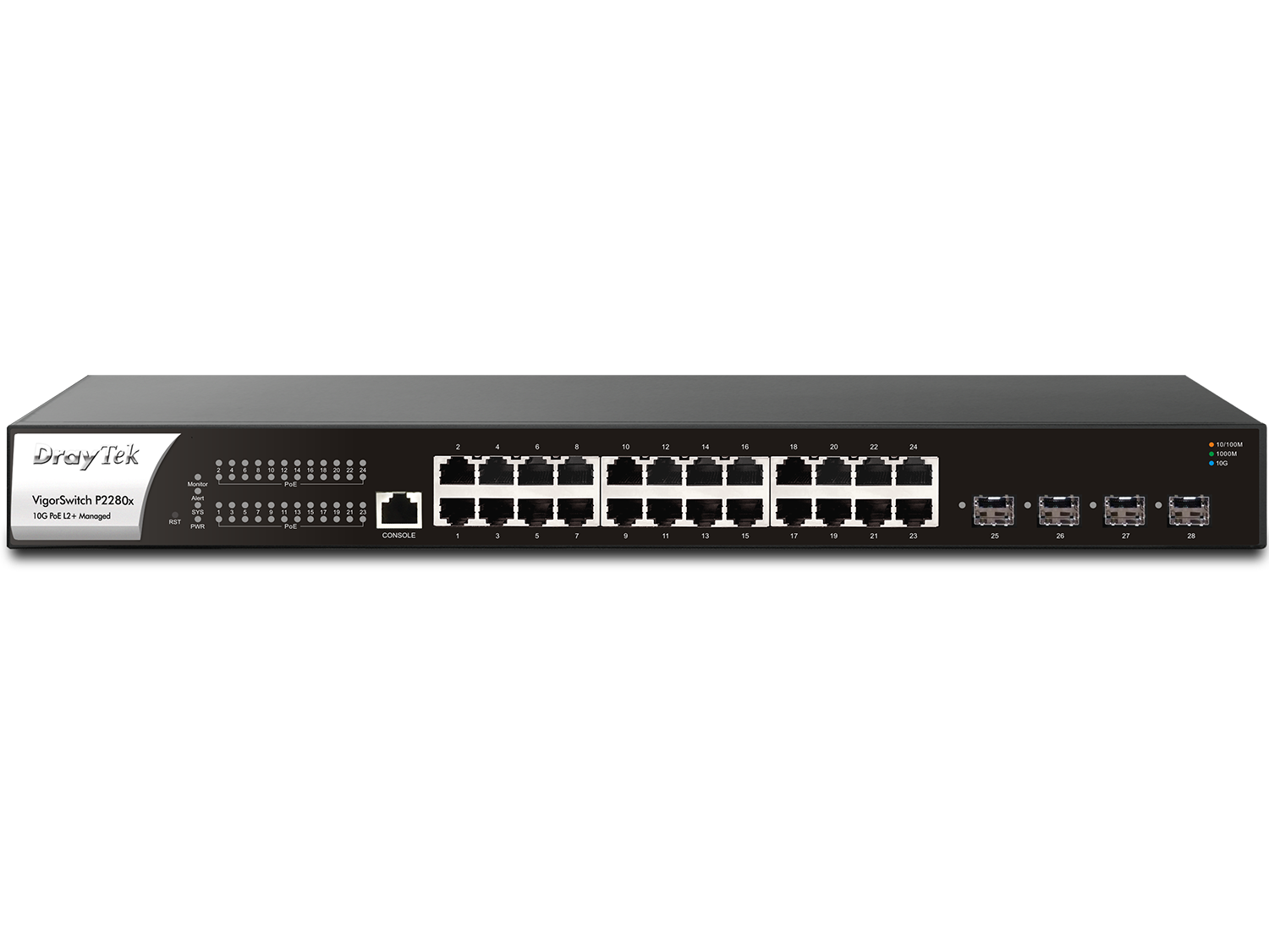 DrayTek VigorSwitch P2280x is a Layer 2+ Managed Gigabit PoE switch ideal for a network with growing network traffic.