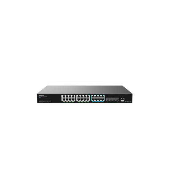 Grandstream GWN7822P is a high-performance Layer 3 Managed Network Switches. This product offers the following features and specifications: Layer 3 Managed Multi-Gigabit Network Switch, 8x 2.5GbE, 16x GbE RJ45 PoE 802.3 af/at, 30W for port 1-16, 60W for port 17-24, 360W total power budget, 2x SFP+, Internal PSU, optional redundant PSU.