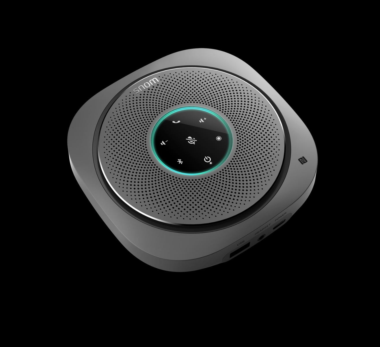 The small, lightweight Snom C300 convinces thanks to the powerful 3 Watt speaker and the 6 microphones, which produce a crystal clear sound in full duplex handsfree mode via beamforming microphone array.