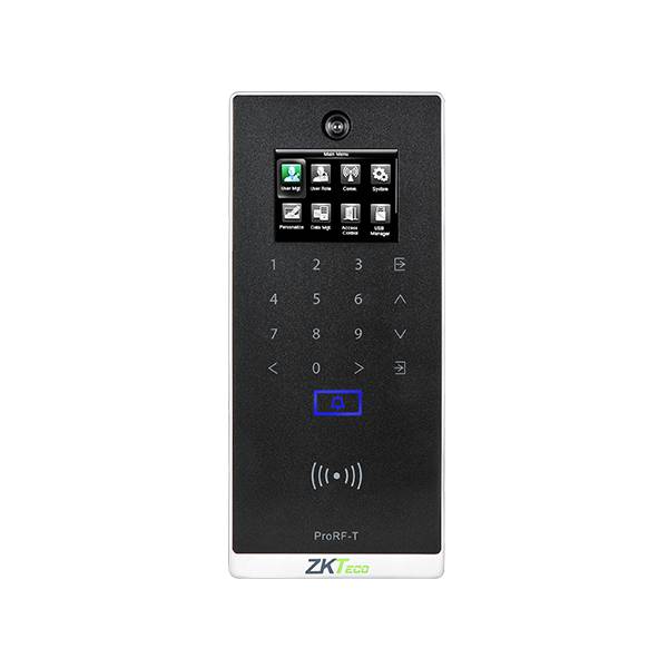 ProRF-T is an RFID access control terminal incorporated with 2.4 inches TFT LCD Screen .The color display and new firmware structure offer a user-friendly menu for easy management, as well as photo taking capability that enables attendance photos and photo ID (optional). The new ZMM 220 hardware platform has a clock rate of 1.2 GHZ, greatly enhancing the speed verification. Touch keypad enables easy and convenient operations, such as managing users, accessing control parameter settings, or reading reports.